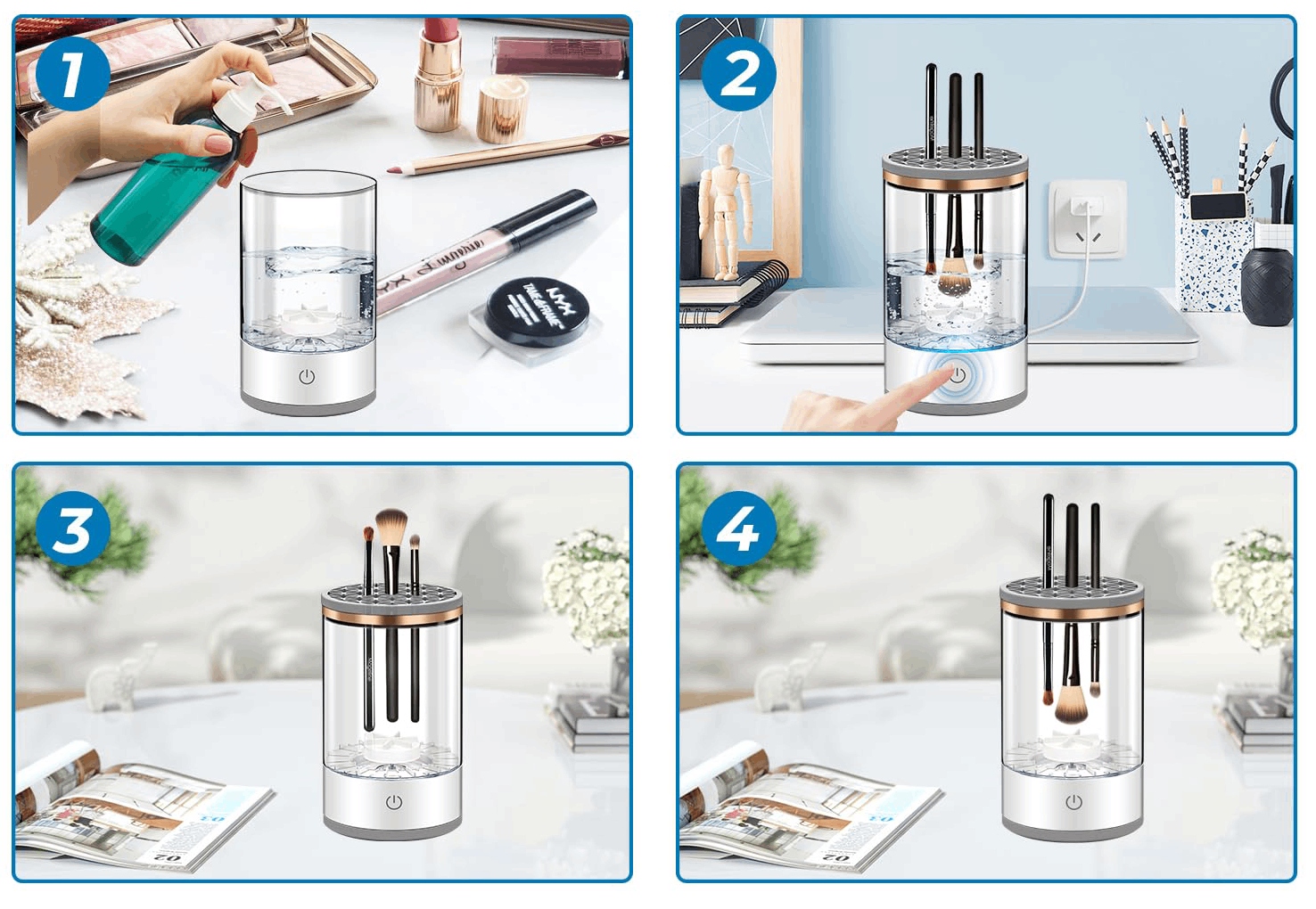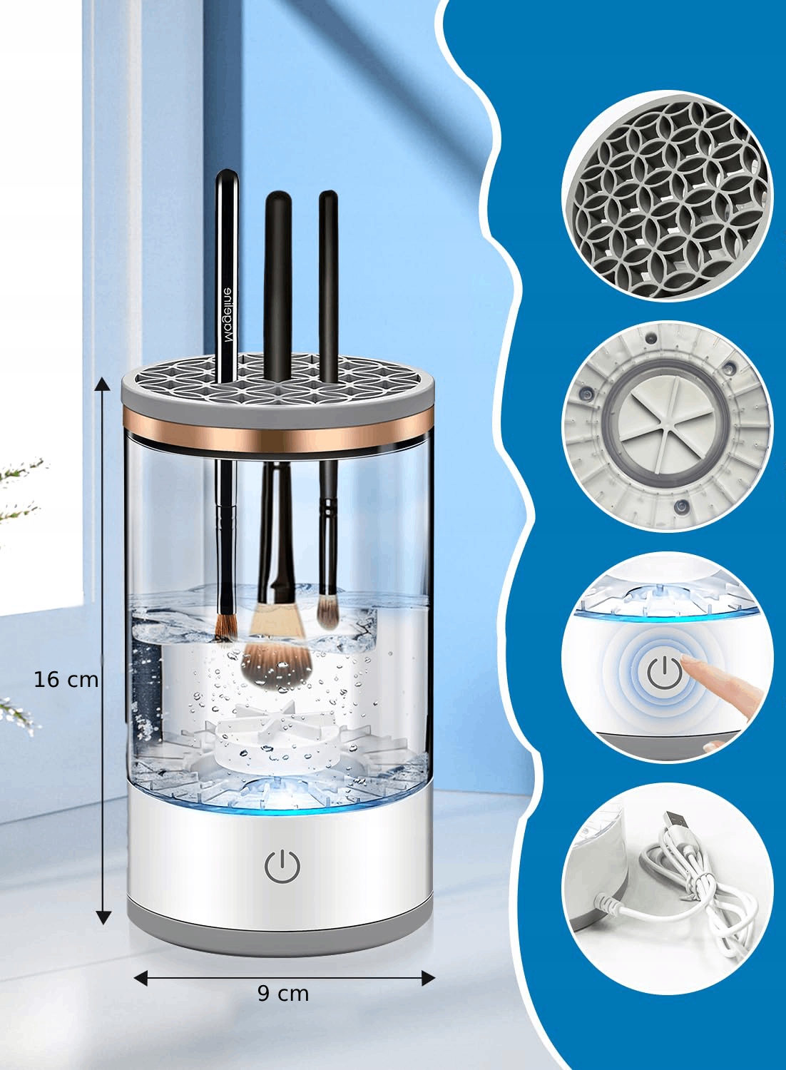 - Szybkość i wygoda: Oszczędzaj czas dzięki automatycznemu czyszczeniu wielu pędzli jednocześnie.