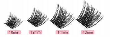 - Kępki rzęs: 200 kępek rzęs wykonanych z delikatnego i trwałego materiału, który doskonale imituje naturalne rzęsy. Długości 8-6 mm