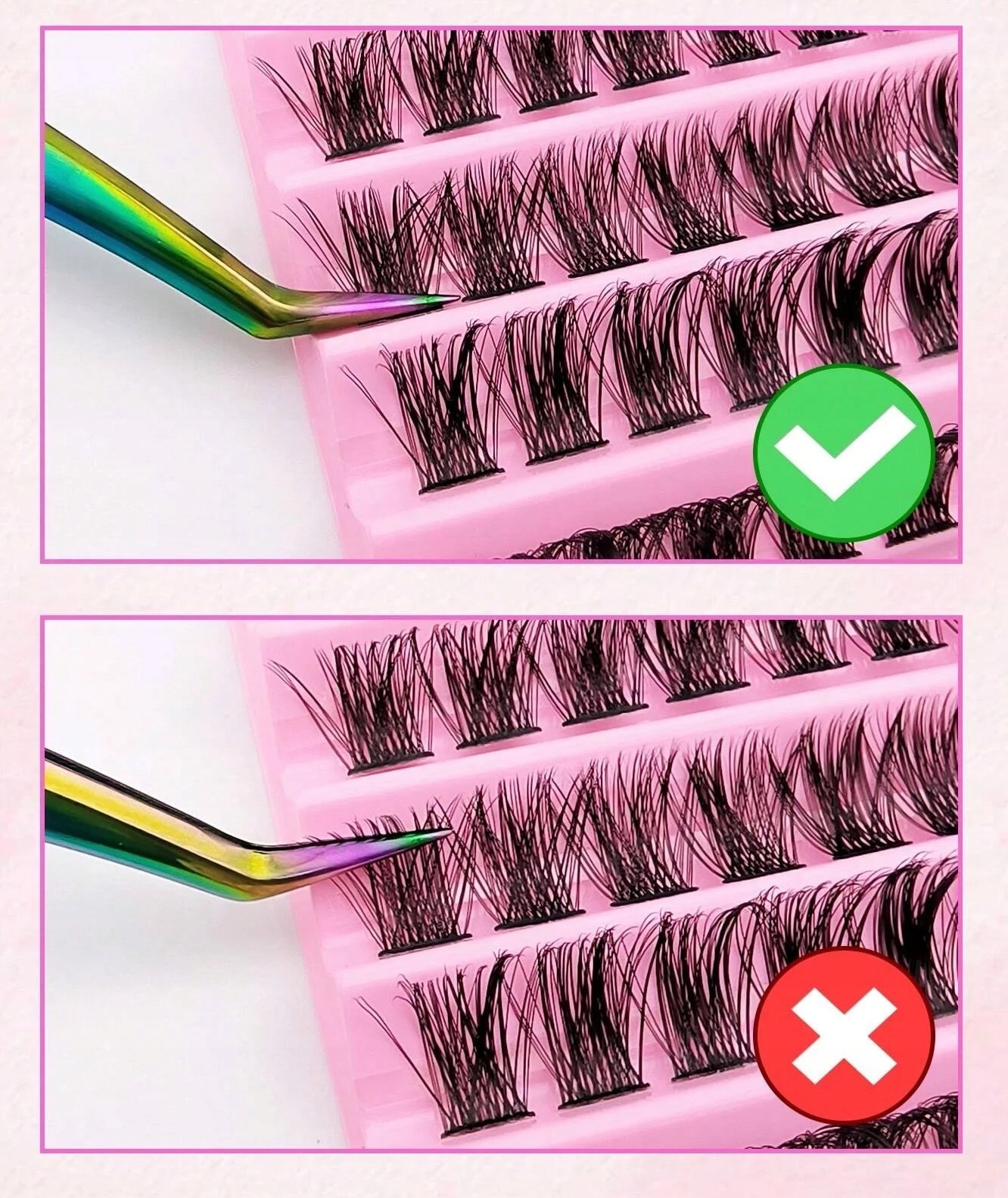 Rzęsy bondingowe w kępkach, idealne dla osób pragnących uzyskać efektowny wygląd rzęs bez konieczności stosowania pełnych pasków.