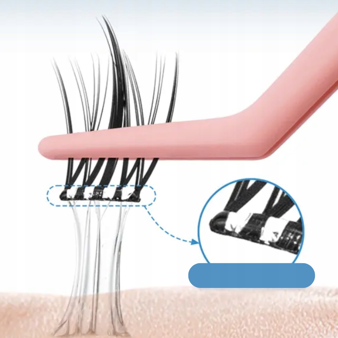 - Użyj pęsety dopychając delikatnie rzęsy sztuczne do naturalnych tak aby dobrze się przykleiły. Nie przyklejaj rzęs do powieki, grozi to wystąpieniem uczulenia.