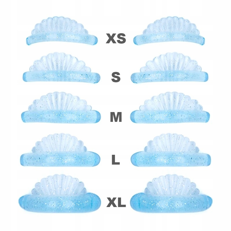 Zestaw Blue Shells zawiera 5 par wałeczków w rozmiarach XS, S, M, L i XL, co pozwala precyzyjnie dobrać kształt podkręcenia do długości rzęs i typu oka klientki.