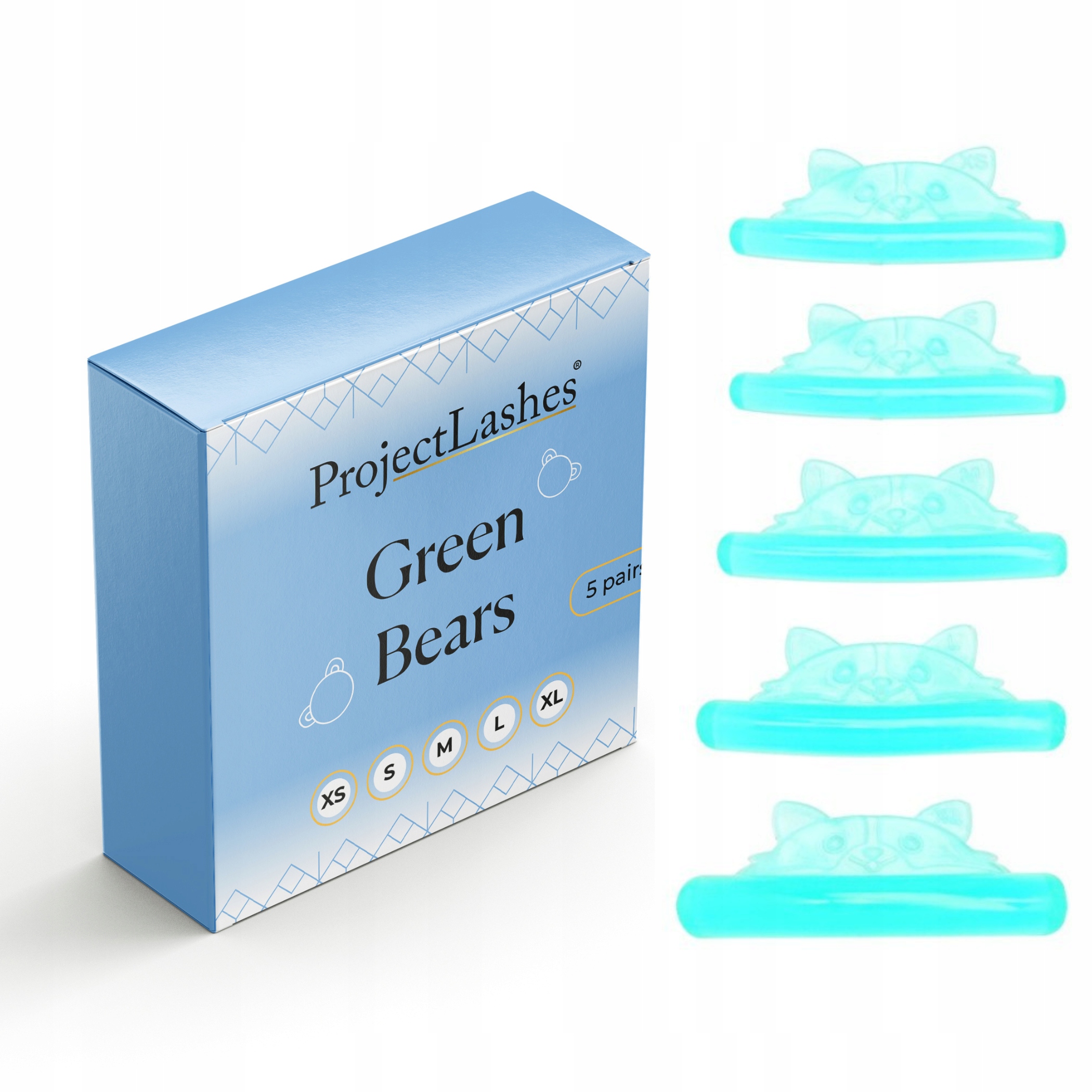 Silikonowe wałeczki do liftingu rzęs ProjectLashes Green Bears – perfekcyjne uniesienie w 5 rozmiarach