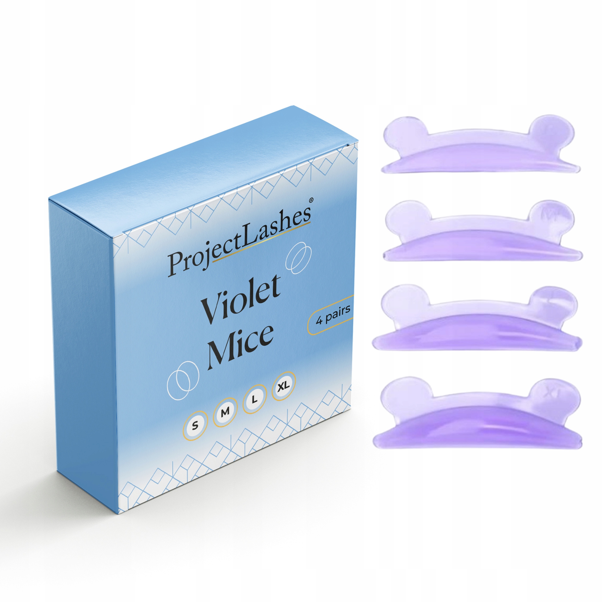 Silikonowe wałeczki do liftingu rzęs ProjectLashes Violet Mice – precyzja i urok w 4 rozmiarach