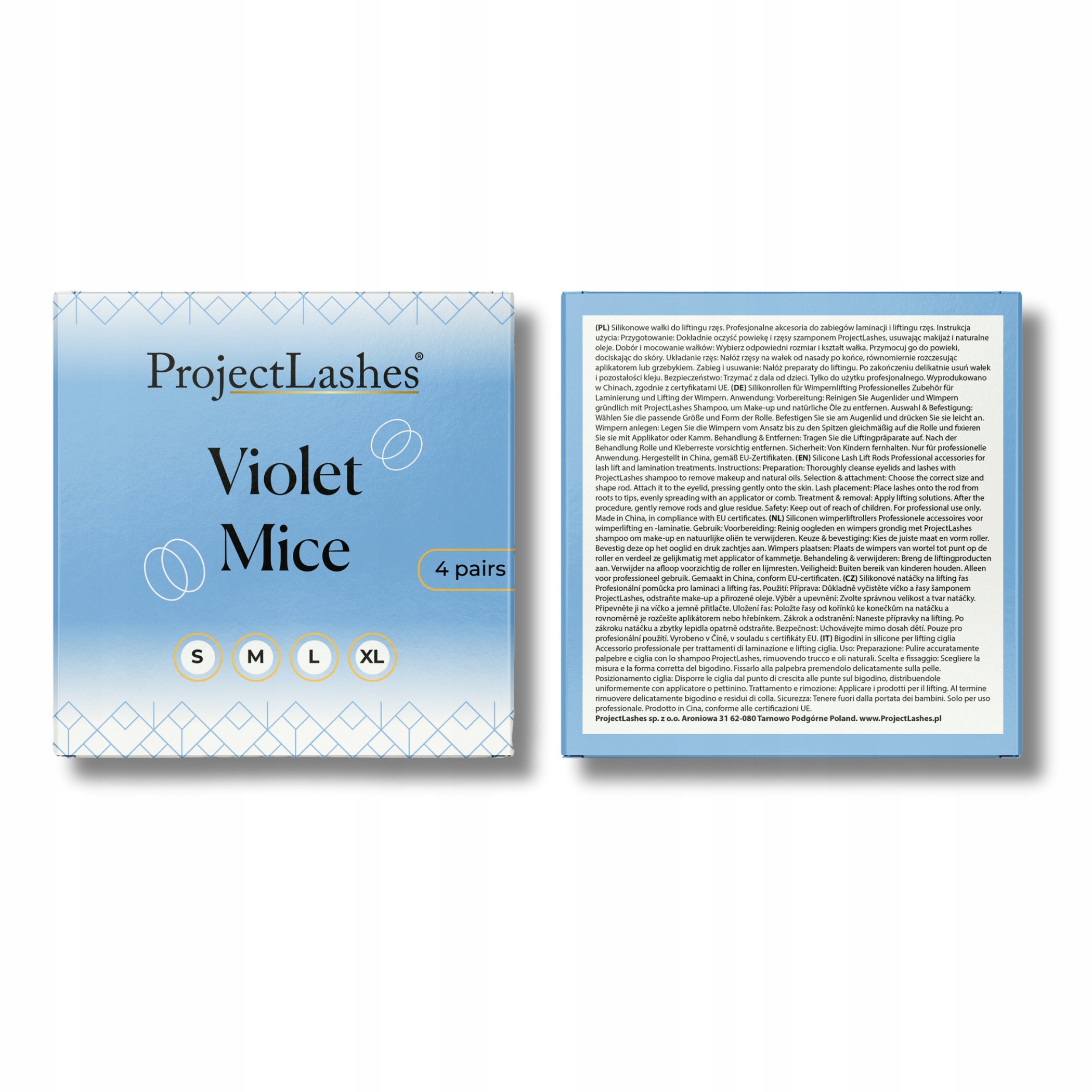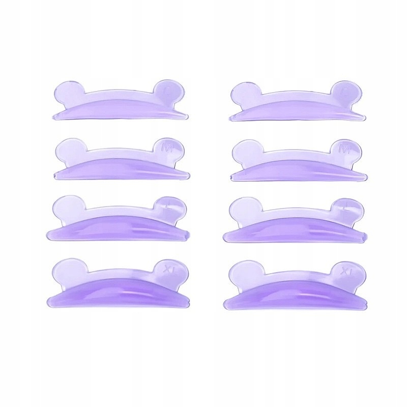Zestaw Violet Mice zawiera 4 pary wałeczków w rozmiarach S, M, L i XL, które pozwalają dobrać idealny kształt podkręcenia do typu oka i długości rzęs.