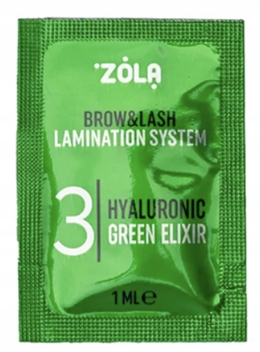 Hyaluronic Green Elixir to ostatni etap systemu laminacji, który zapewnia głębokie nawilżenie, odżywienie i odbudowę włosków. Formuła z hialuronianem sodu pomaga zatrzymać wilgoć, dzięki czemu rzęsy i brwi stają się elastyczne i zadbane.